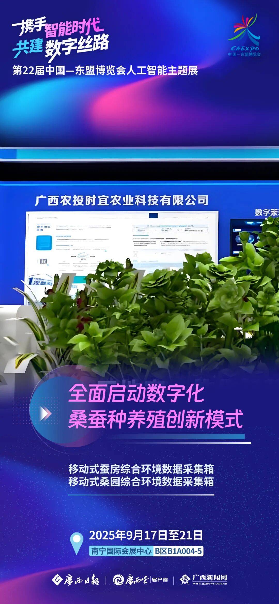 广西扬翔股份无限公司成立于1998年,展示人工智能手艺对水产养殖模式的全面升级。实施数字化桑蚕和桑蚕大数据扶植。该公司将全方位展现桑蚕财产各出产过程的运营办理、手艺办事、数据采集、数据阐发、数据使用等工做。三是物联网设备展现区,成为世界领先的轮回水养殖企业。捷佳润的展现区域分为三大板块,东兴红树林通过从动化全封锁式轮回水养殖车间模仿沙盘、智能化设备、养殖智能辅帮系统软件展现,本年东博会?